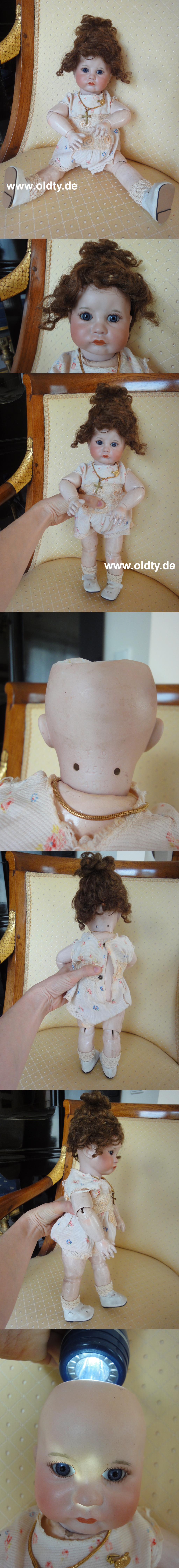 ausgezogenen Zustand geprüft, der Puppenkörper ist gut erhalten, nur leichte Gebrauchsspuren, Körper mit originalem Finish. Der Gliederkörper