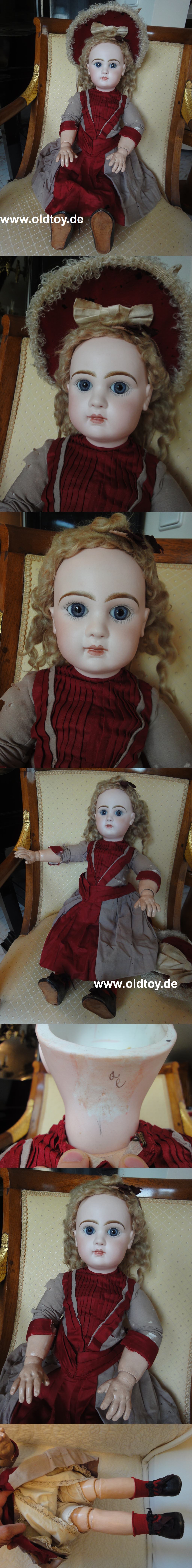 originale Perücke handeln. Die Jumeau ist komplett alt bekleidet, sie trägt ein
