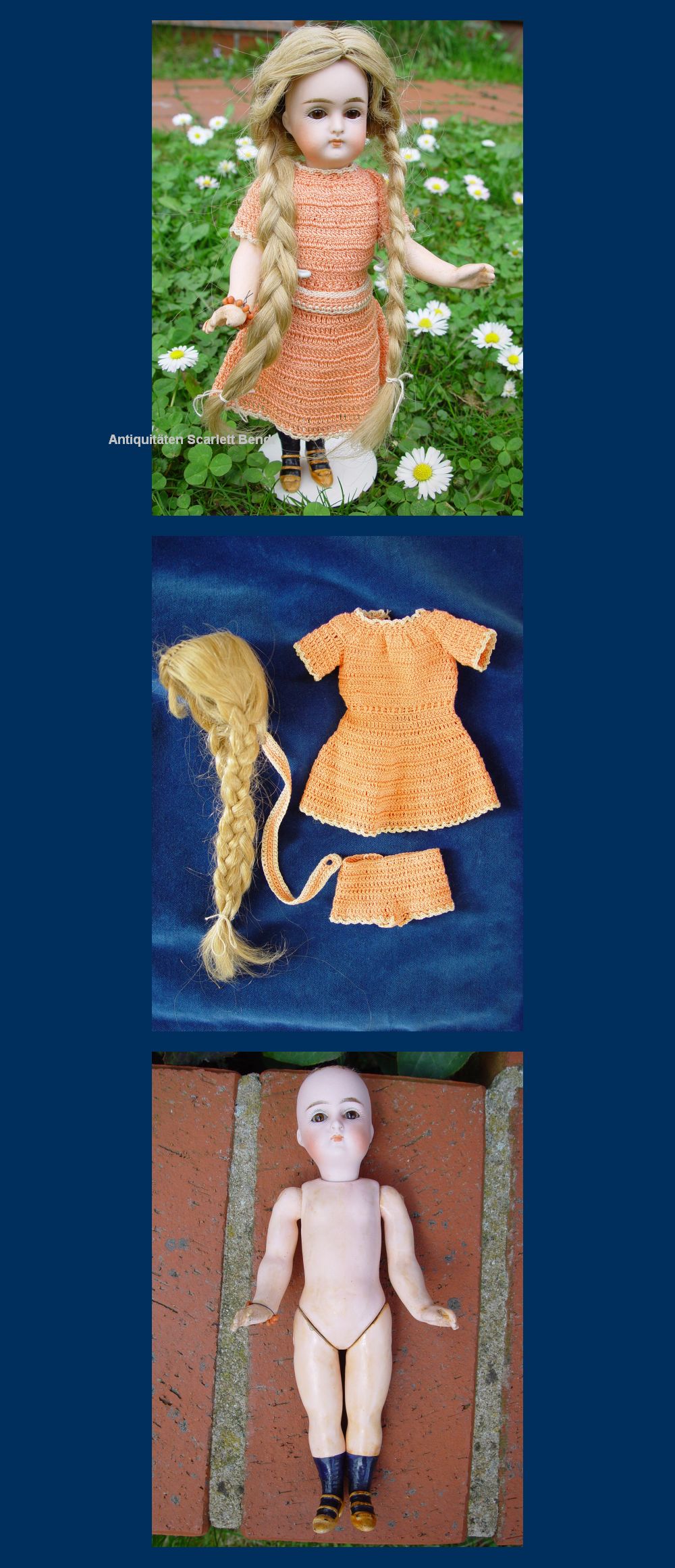 antike Puppenkleidung ist gut erhalten und gepflegt, die Unterbekleidung hat kleinere Fleckchen. Das seltene Puppenkind stammt aus Nichtraucherhaushalt, ohne Gerüche.