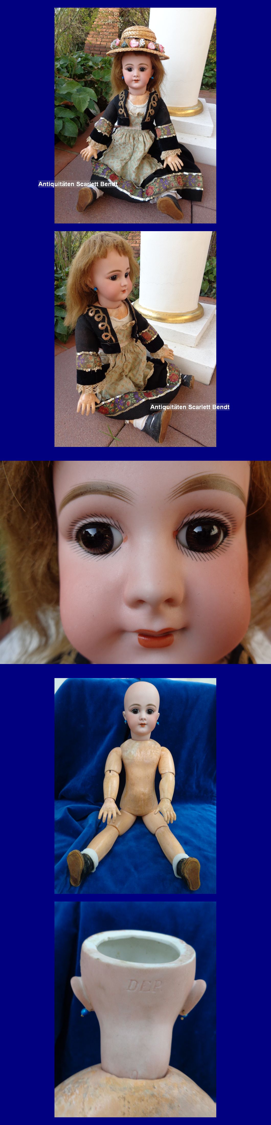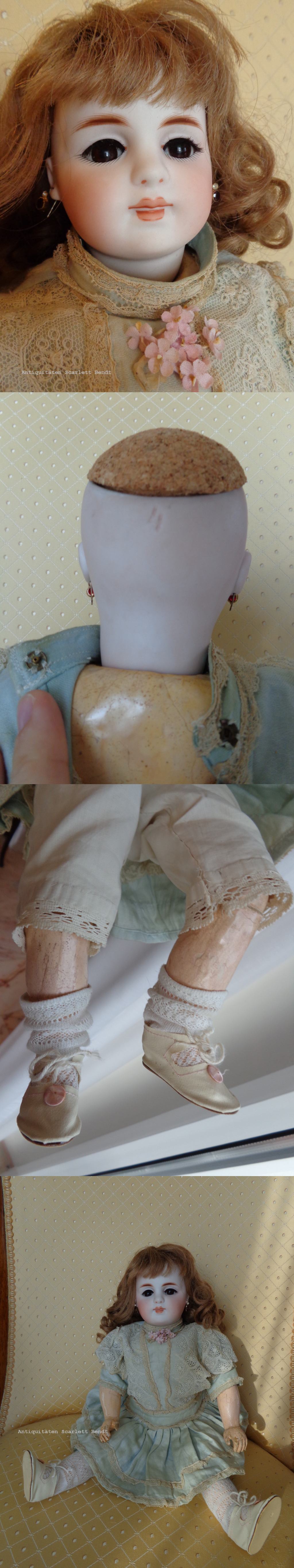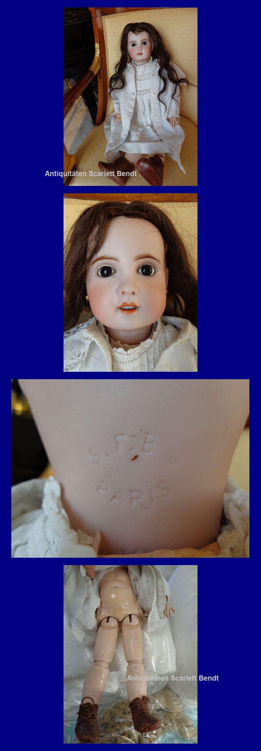Antike Puppe Porzellankopfpuppe sfbj 252, geschlossener Mund, le Boudeur, Trotzkopf.