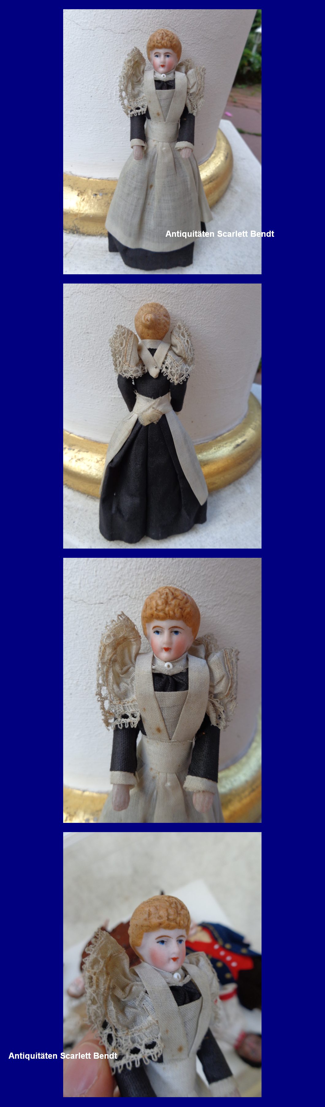 Antike Puppenstubenpuppe, Hausmädchen für die herrschaftliche Puppenstube, um 1910.