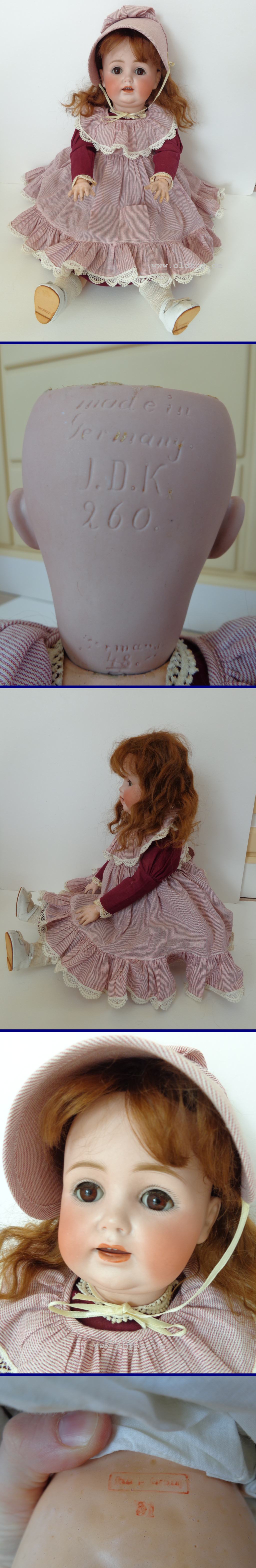 Altersbedingter, sehr guter Zustand mit leichten Spielspuren. Der Puppenkopf wurde von innen und außen gründlich ausgeleuchtet, er ist gut erhalten, ohne Haar-Riss, ohne Sprünge, ohne Chips, ohne restaurierte Stellen, bitte siehe Fotos mit Lampentest. Das Gesicht ist traumhaft schön modelliert, Wangen ohne Kratzer. Die Augen schließen wenn man die Puppe auf den Rücken legt, das Lidwachs ist schön erhalten. Die antike Perücke ist gut erhalten, sie ist nicht am Kopf festgeklebt, ich kann den Kopf innen mit Watte füllen. Der antike Puppenkörper ist gut erhalten, schönes, altes finish mit originalen Farbakzenten, ich habe unter die Kleidung geschaut, die Gummis sind nicht ausgeleiert, die Hände haben alle Finger, es gibt alte Farbabplatzer an den Gelenken (vor allem an den Knien), es ist eine antike Puppe, ich habe alles so gelassen wie vorgefunden. Die schöne Puppenkleidung ist gut erhalten mit kleinen Altersspuren. Ganz sicher originale, antike Puppe um 1912, keine Replik, nichts nachgemachtes, dafür garantiere ich. Fragen beantworte ich gerne. Auf Wunsch kann ich weitere Bilder vom Lampentest senden.